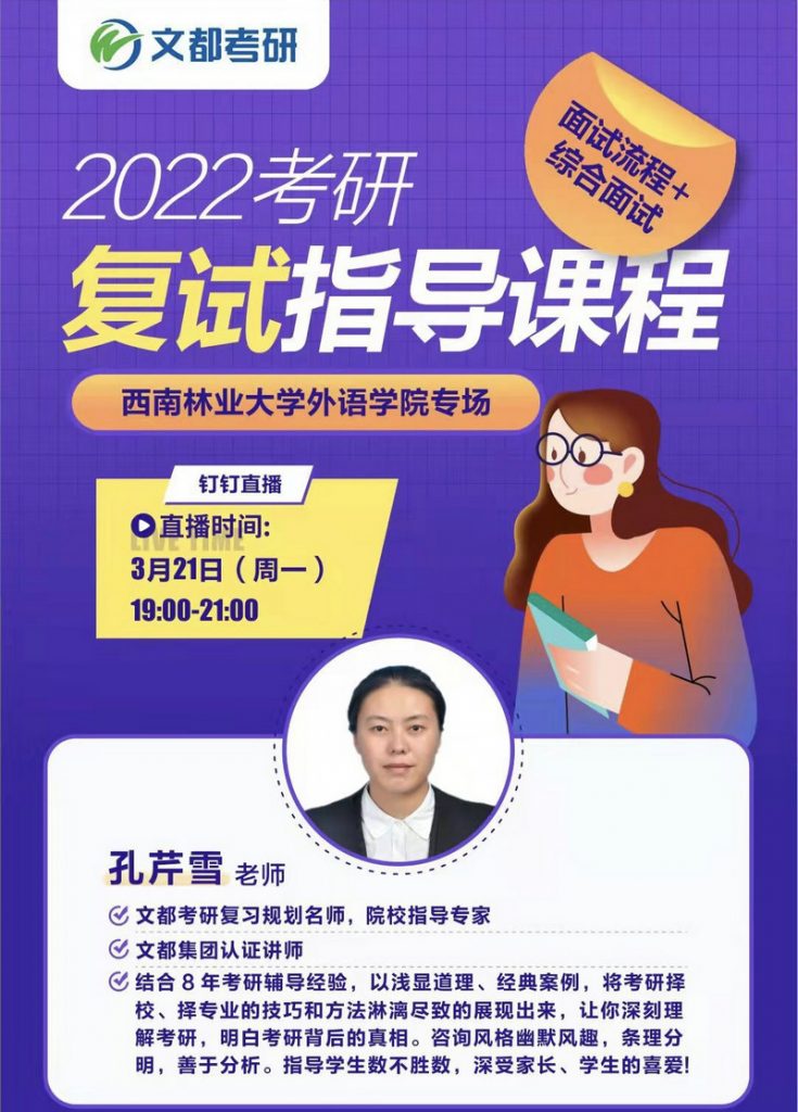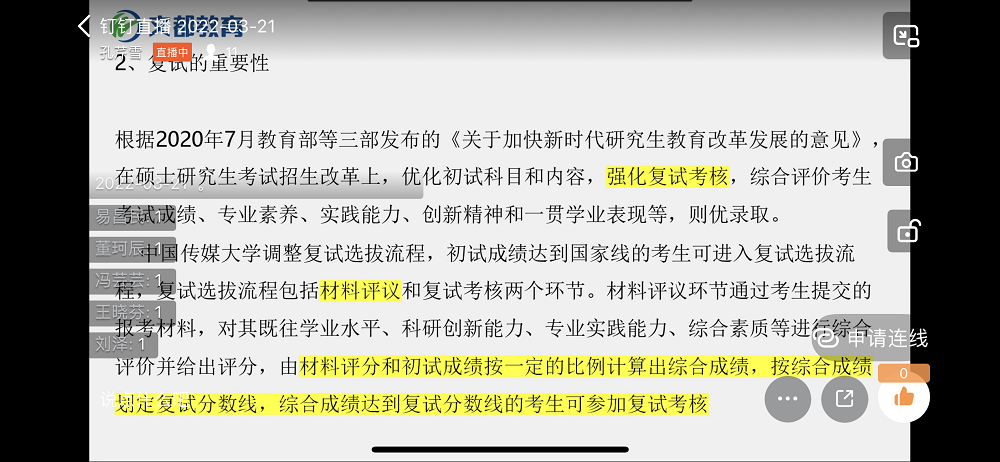 为帮助2018级同学更好备战研究生复试,同时为了进一步推动2022届员工毕业去向落实工作,OK138太阳集团于3月21日联合文都考研举办专场考研复试指导线上公益讲座,共计有来自全校各文科专业20余名同学参加。