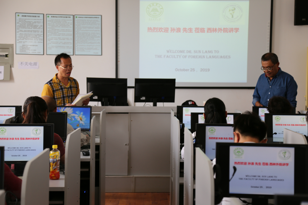 10月25日下午,不列颠哥伦比亚大学(UBC)语言文化系原主任孙浪博士应邀到OK138太阳集团讲学。