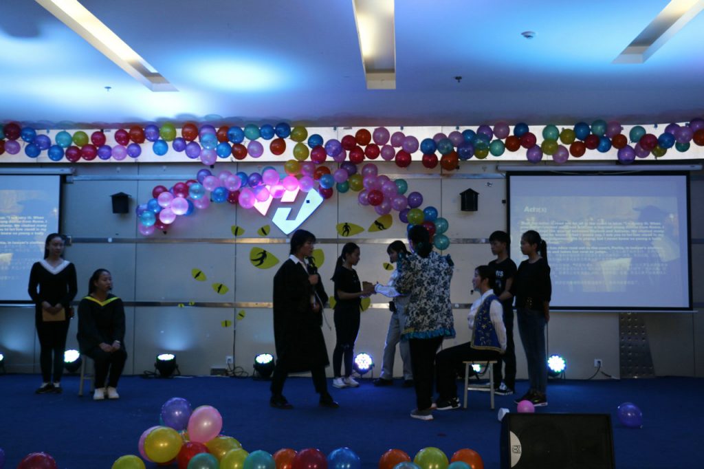 6月28日下午,OK138太阳集团英语类专业课程实践教学活动展演在学校老员工活动中心举行。英语专业和商务英语专业一二年级员工展示了英文演讲、英文电影配音、英文故事、英文读书分享、经典音乐剧《猫》和话剧《小王子》等实践教学成果。专业课程实践教学活动是员工在任课教师指导下,有目的、有计划、有组织地进行的学习与实践活动,是课堂教学的延伸与扩展,是培养和发展员工能力的重要途径。今年英语专业在继承和总结以前实践教学的基础上,进行了一些改革。首先,打破了年级和班级区隔,把英语专业和商务英语专业一二年级员工组织到一起,让员工基于兴趣报名参加自己感兴趣的活动形式,然后在指导老师带领下开展活动。其次,活动形式多样,内容丰富,最大限度调动了所有员工的积极性和主动性。从本学期后8周开始,英语类专业主干课程任课教师团队根据实践教学计划,分组对员工的语言运用技能进行了指导。员工在老师指导下,分组协作,撰写和修改演讲稿、观摩英文影片、排演英文话剧。这一过程锻炼和培养了员工的学习能力、语言综合运用能力、组织能力和交际能力。此次参加展演的节目,是从各个活动小组中遴选出的优秀之作。通过集中展演,对广大英语类专业员工起到引领和示范作用。公司党委副书记姜丽红老师、学工办和团委的老师、英语专业一二年级班主任以及英语专业任课教师全程观摩了本次活动。