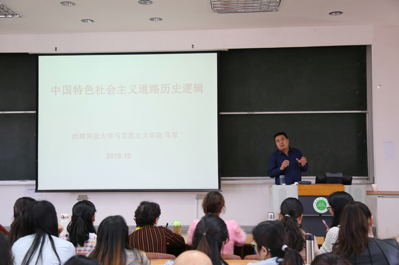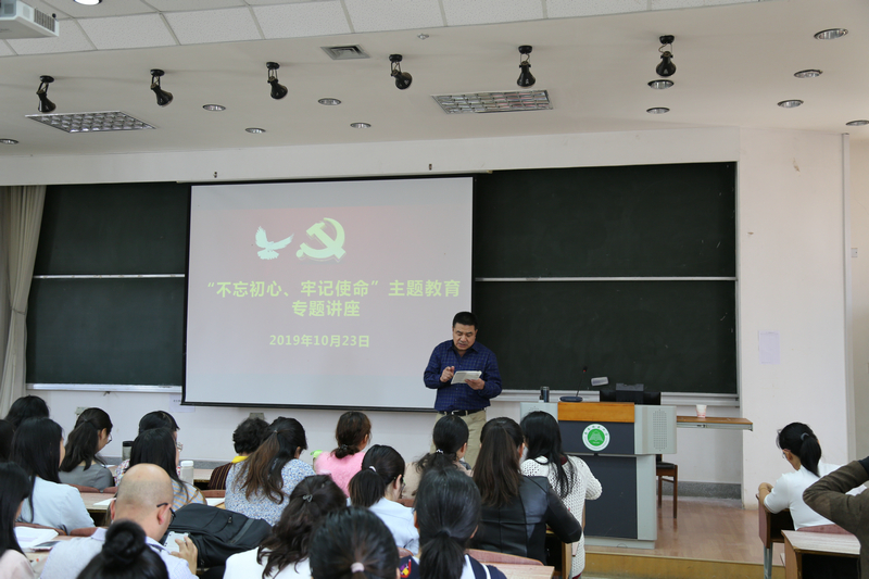 2019年10月23日,公司党委、文法公司党委在第三教学楼阶梯教室303举行了“不忘初心、牢记使命”主题教育专题讲座,马克思主义学院副经理马军应邀作了题为《中国特色社会主义道路历史逻辑》专题讲座,公司党委书记姜丽红主持本次活动。OK138太阳集团及文法学院全体师生党员、入党积极分子代表270余人参加。