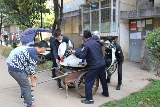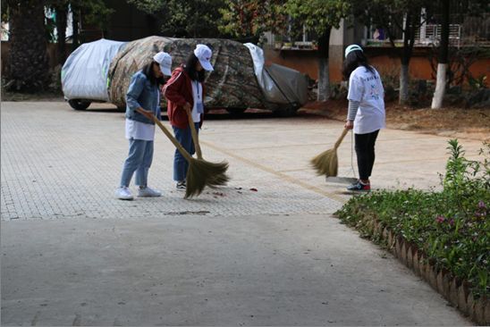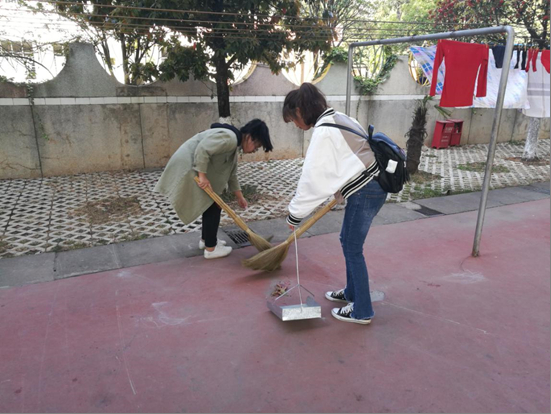 下午四点同学们抵达家属区,在负责老师的安排下,同学们开始了有条不紊的志愿服务工作,本次志愿服务主要工作为女生进行街道落叶的打扫,男生进行乱摆乱放摩托车整理,同学们热情洋溢的进行本次活动,展现了志愿者们阳光向上,精神饱满的良好状态。在同学们一个半小时齐心协力的工作之下,社区卫生更加整洁,同学们也更加深刻的体会到志愿奉献精神的可贵之处。