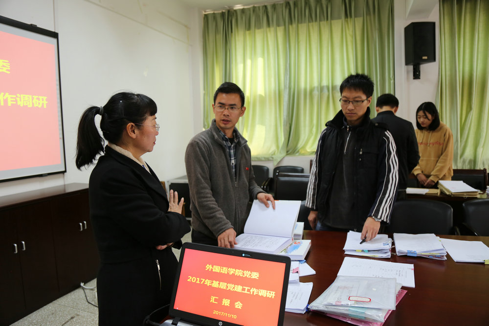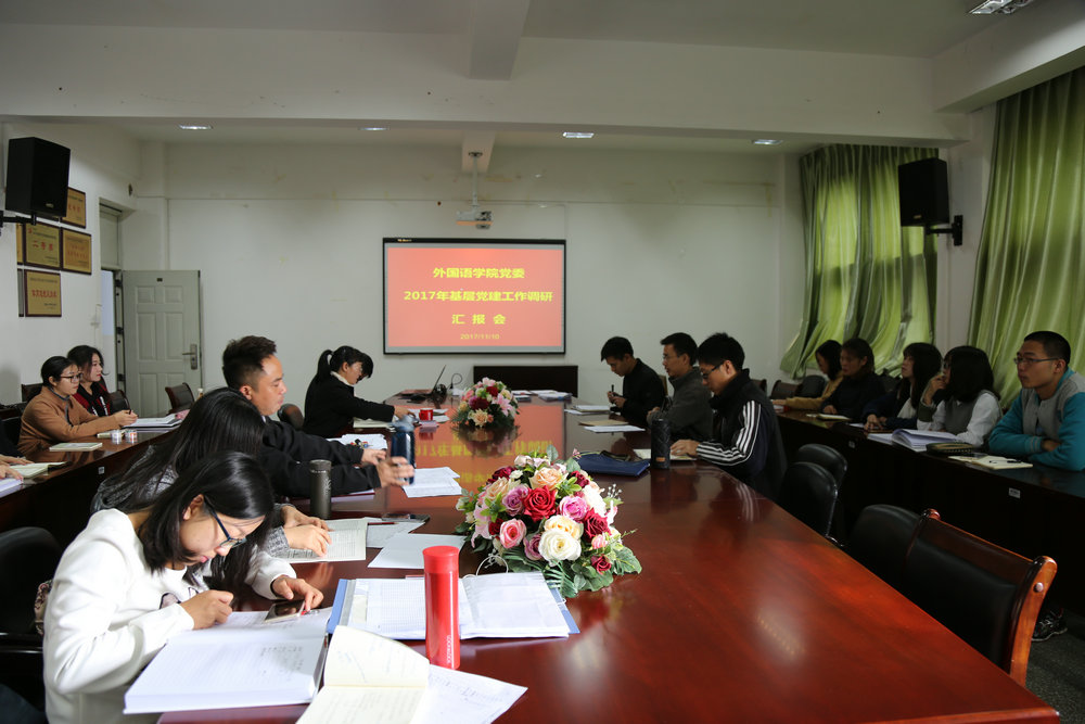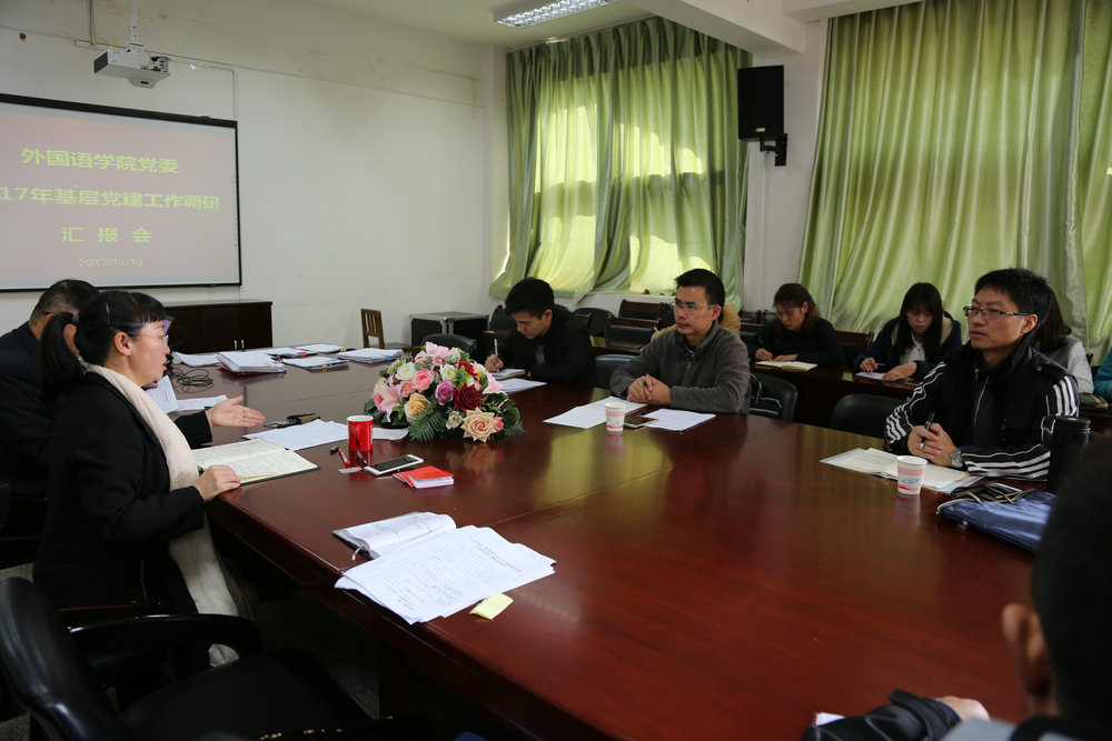 11月10日上午,由OK138太阳集团党委组织部伍学龙副部长、锁中原同志、贺斌同志组成的调研组对OK138太阳集团2017年党建工作开展调研,专项调研工作在第三教学楼706会议室进行,公司党委书记姜丽红同志作汇报,OK138太阳集团全体党委委员、全体党支部书记、员工支部支委、组织员参加此次会议。
