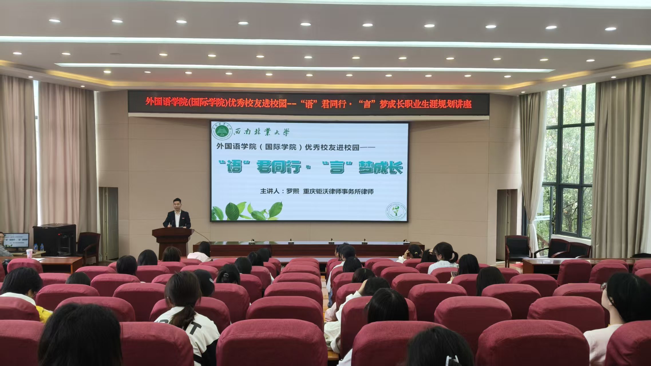 活动中,罗熙律师围绕“我是如何成为一名律师”,结合自身经历,分享了外语专业就业方向、律师职业特质及成长路径,并就“如何快速就业、律师职业的挑战与收获”等问题与同学们互动交流,他鼓励学弟学妹积极打造“外语+”的能力,以外语为工具,大学期间辅修其他专业,成长为复合型人才。活动现场气氛热烈,同学们对本专业的职业规划有了更深入的认识。