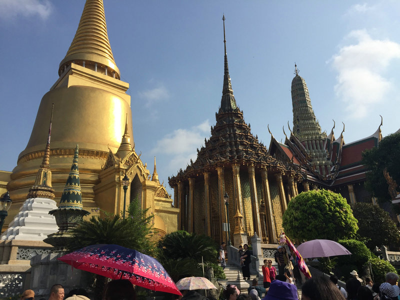 我们跟随学校游览了很多地方,素林府和大皇宫令我记忆犹新,大皇宫是历代君王住的地方,其华丽就可想而知,印入眼帘的全部是金灿灿黄艳艳。为了表示对于佛祖的恭敬,游客们的着装被要求的非常严格。