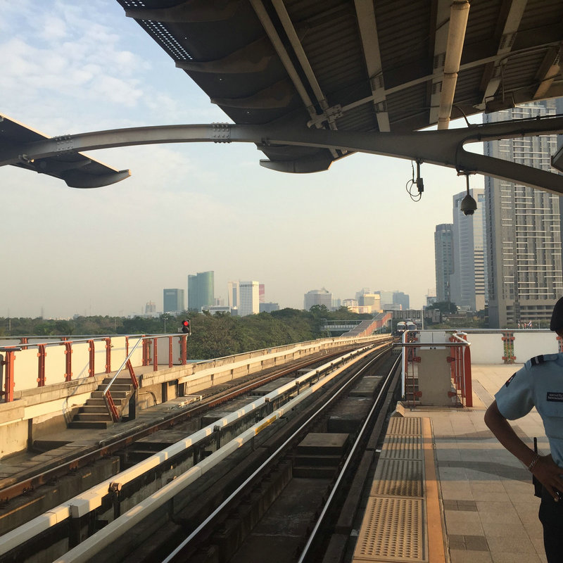 泰国给我的第一印象,来自于他们的公交工具——天铁(BTS)。天铁横穿楼房、如同巨龙在高楼大厦中游走实在是一副神奇景象。低头看脚下的车流,用“亚洲首堵”来形容曼谷,这似乎一点都不为过。
