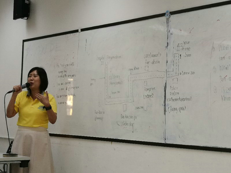 泰国是一个有信仰的国家,泰国的佛像和领导人的画像随处可见。交流期间,泰国佛统皇家大学细致周到,把白天的行程安排的很周到,主要分为泰语学习、泰国菜、泰国舞蹈、泰国文化交流等课程。泰语学习是泰国老师以英语授课的方式向我们传授基本的泰语知识,让我们学会用基本的泰语和当地的人民进行交流沟通。