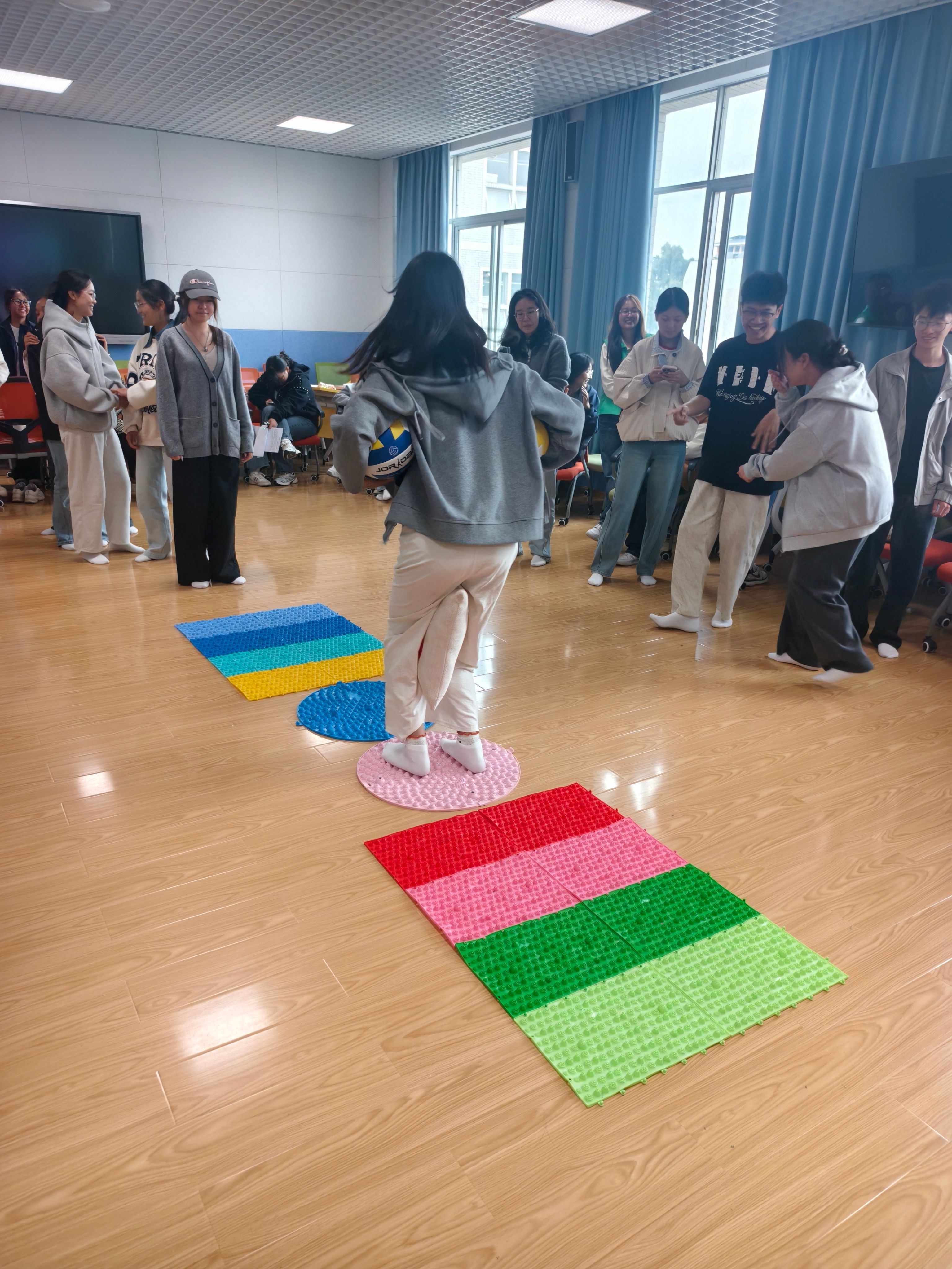 活动现场的五感体验站颇具特色,通过触摸、聆听、品尝、嗅闻唤醒五感觉察力。 指压板挑战以趣味竞技助员工打破隔阂、释放压力。随后霍老师引导冥想,同学们伴随舒缓音乐放松身心,重拾平和。围坐心声环节,员工们卸下防备,坦诚分享烦恼与困惑,现场真诚倾听。最后霍老师还分享了实用的日常解压小技巧。