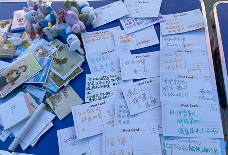 此次活动采用“线上+线下”相结合的活动形式。线上活动以积攒爱心为山区孩子换取物资和微信小程序在线DIY制作精美明信片送祝福为主。线下活动主要面向全校师生,在标本馆前和教工食堂门口设置了2个募捐服务点,通过征集闲置的书籍和绘本,将师生不再需要的书籍绘本送到云南省怒江傈僳族自治州贡山独龙族怒族自治县独龙江乡中心完小学的小朋友的手中,进行再次“发光”利用。除捐献书籍外,校领导、外籍教师、职工等还为山区的小朋友写下了祝福的卡片,鼓励他们努力学习,走出大山,快乐生活。