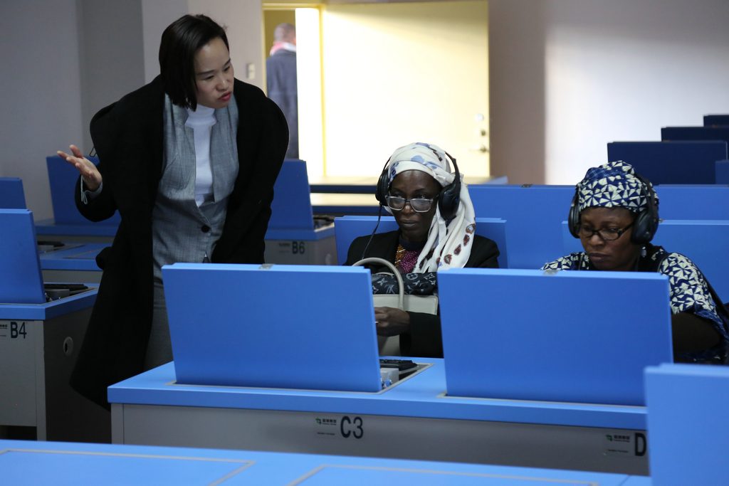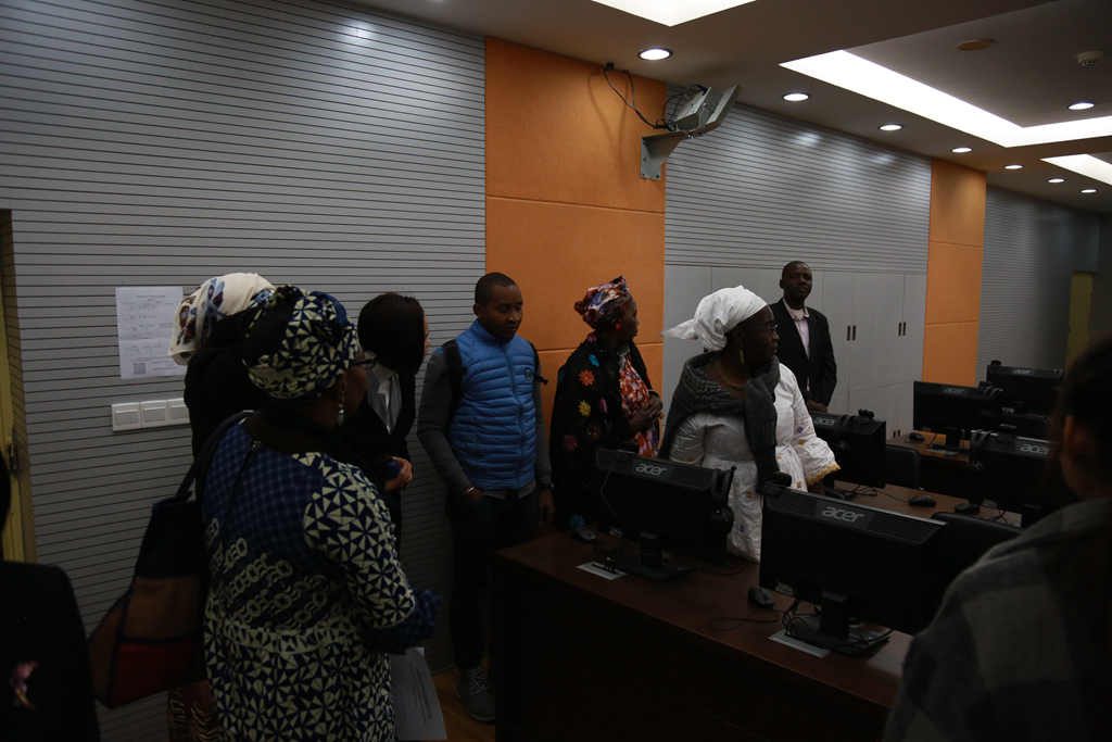 座谈会后,在公司领导的陪同下,马里教育代表团饶有兴趣地参观了外语实验实训中心,感受和体验公司现代化教学平台与多媒体数字化教学。