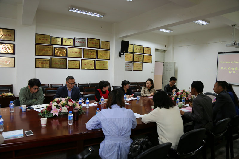 李秀梅代表学校对东方大学国际学校董事长Pathawut Lakklin、云南对孟商务信息咨询有限公司总经理陈芳、副总经理李淼、会务专员宋坤一行到访公司表示热情欢迎。
