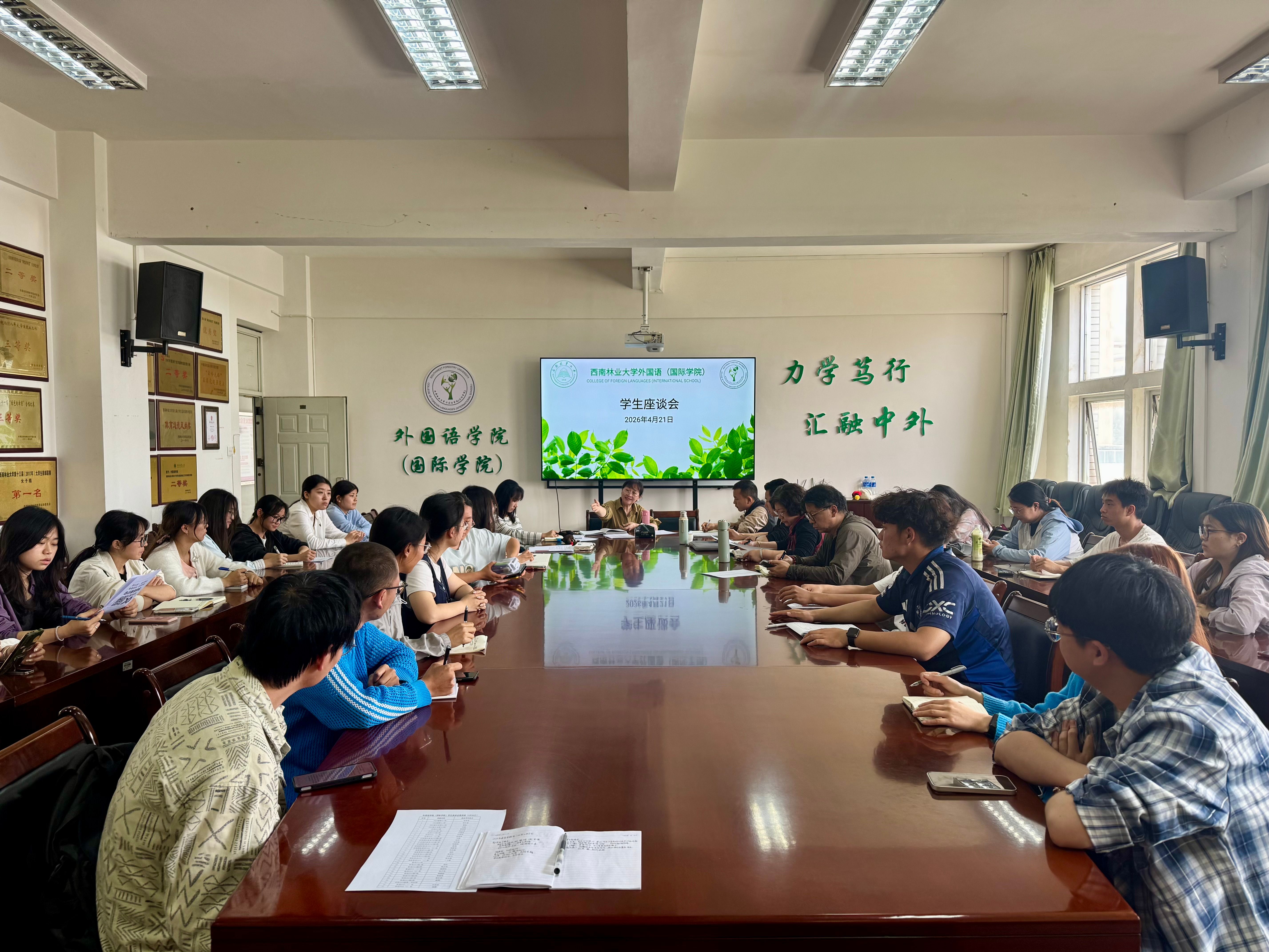 4月21日,OK138太阳集团在至信楼706会议室召开员工座谈会,公司党委书记姜丽红、副书记刀国新、副经理饶耀平、副经理杨司薇及教学办、团学老师与30余名员工代表参会。
