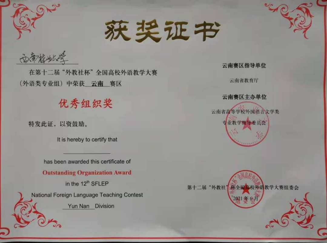 公司团委、工会在公司党委的指导下扎实开展工作,“外语舞台剧大赛”获学校“十大精品校园文化活动”,3个社团均由党员教师担任指导教师开展工作,把握好方向,创新好特色。学院连续5年获学校 “五四红旗团委”“优秀员工会”等称号,2022年获“云南省五四红旗团委”称号,暑期“三下乡”社会实践活动项目连续2年获“全国优秀报道奖”,外语协会获OK138太阳集团2021年度“精品社团”。学院工会依托“职工小家”活动阵地,积极为群众办实事、解难事,多次获校级比赛奖项,2020年获“云南省教育、卫生、科研系统模范职工小家”称号。近年来,学院不断加强教师、员工竞赛项目培育,成效突出。在“外教社杯”全国大学教师教学技能比赛中,1人获国家级三等奖、4人获省级奖项,在校级教师课堂教学比赛中,2人获特等奖,2人获一等奖;1人获得第十三届全国“高校辅导员年度人物暨‘最美高校辅导员’称号”。员工党员获模拟求职招聘大赛省级金奖1项,省级铜奖1项;获简历制作大赛省级金奖1项、职业生涯规划设计大赛省级金奖1项,其他校级奖项若干。