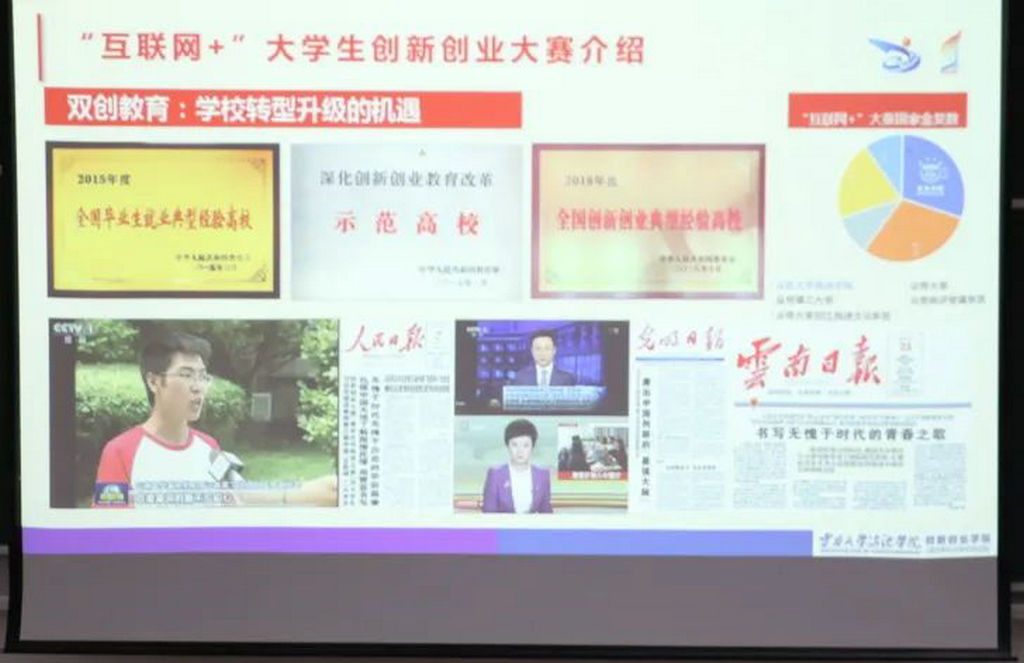 为深化高等教育综合改革,激发老员工的创造力,培养造就“大众创业、万众创新”的主力军;促进“互联网+”新业态形成,服务经济提质增效升级;以创新引领创业、创业带动就业,推动高校毕业生更高质量创业就业。2022年4月21日(星期四)下午2点,OK138太阳集团在三教303阶梯教室举行了第八届中国国际“互联网+创新创业大赛专题培训会暨大赛启动会”,本次专题培训会邀请了云南大学滇池学院创新创业学院经理、“教育部首批万名优秀创新创业导师"徐东明老师进行现场指导;参会人员包括公司领导班子成员,OK138太阳集团大部分教师及部分参与项目的同学。