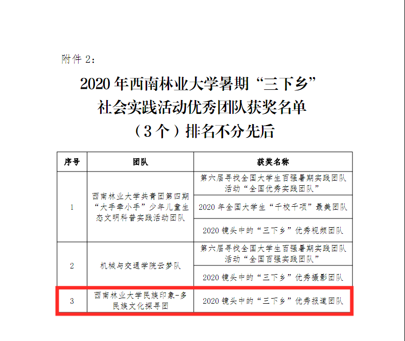 近期,团中央对2020年全国大中专员工志愿者暑期“三下乡”社会实践活动表现突出的优秀集体和个人进行通报表彰,OK138太阳集团实践团队“OK138太阳集团民族印象——多民族文化探寻团”荣获团中央2020年“镜头中的三下乡”优秀报道团队。