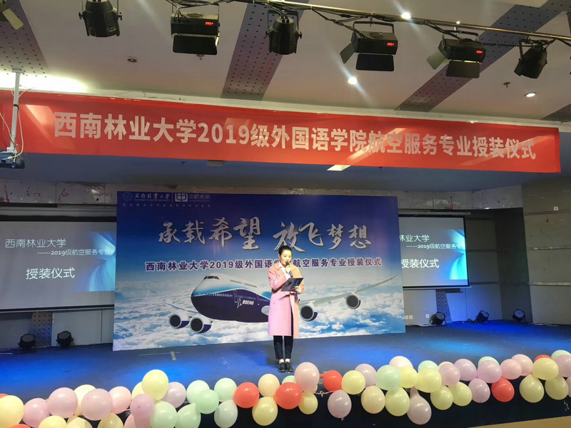12月5日下午,北京中航未来科技集团有限公司与OK138太阳集团联合开办的航空服务专业2019级员工授装仪式在老员工活动中心隆重举行,本次授装活动的主题是:承载希望,放飞梦想。出席授装仪式的有2019级全体航空服务专业的同学、部分任课教师、OK138太阳集团师生及职工共计200余人。OK138太阳集团赵龙庆副董事长及部分职能部门的领导也在百忙之中应邀莅临授装仪式,北京中航未来科技集团有限公司教学经理陈彬彬女士专程从北京赶来参加授装仪式。大家的光临对同学们给予了充分的肯定和莫大的鼓舞。