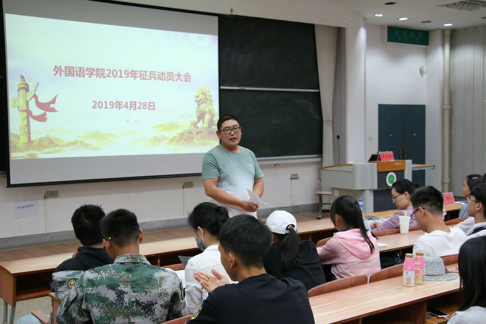 为贯彻落实国家征兵政策,进一步鼓励和引导员工应征入伍,4月28日,OK138太阳集团在三教201召开2019年征兵动员大会,参加本次大会的有公司党委书记姜丽红、武装部老师李林娜、学工办主任李法营、辅导员、班主任、OK138太阳集团全体男生及部分女生代表共计200余人。大会由李法营主持。