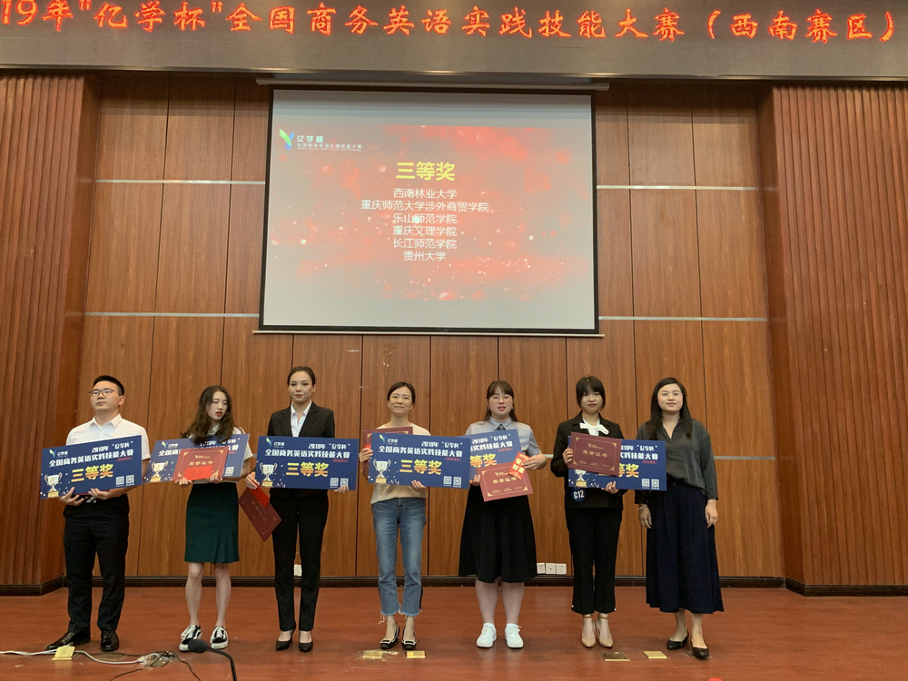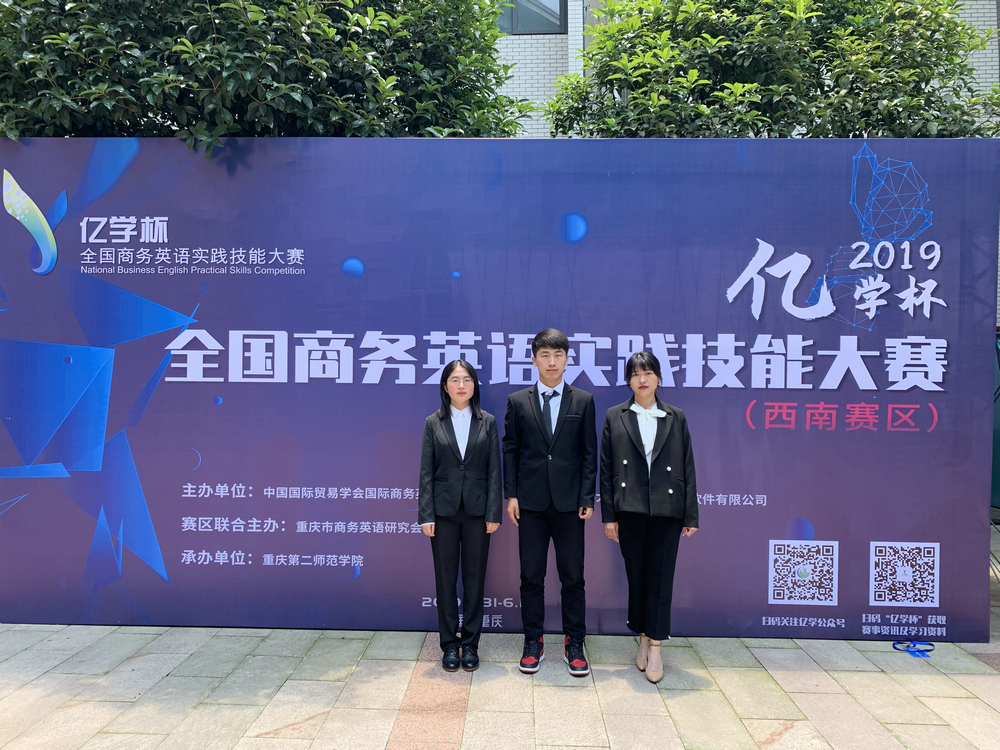 2019年“亿学杯”全国商务英语实践技能大赛西南赛区比赛于5月31日至6月1日在重庆第二师范学院举行。“亿学杯”全国商务英语实践技能大赛由中国国际贸易学会、国际商务英语研究委员会、广东外语外贸大学、厦门亿学软件有限公司主办,西南赛区竞赛由重庆市商务英语研究会联合主办,重庆第二师范学院承办。本次大赛共有四川外国语大学,西南财经大学,西南交通大学等17所高校参加。