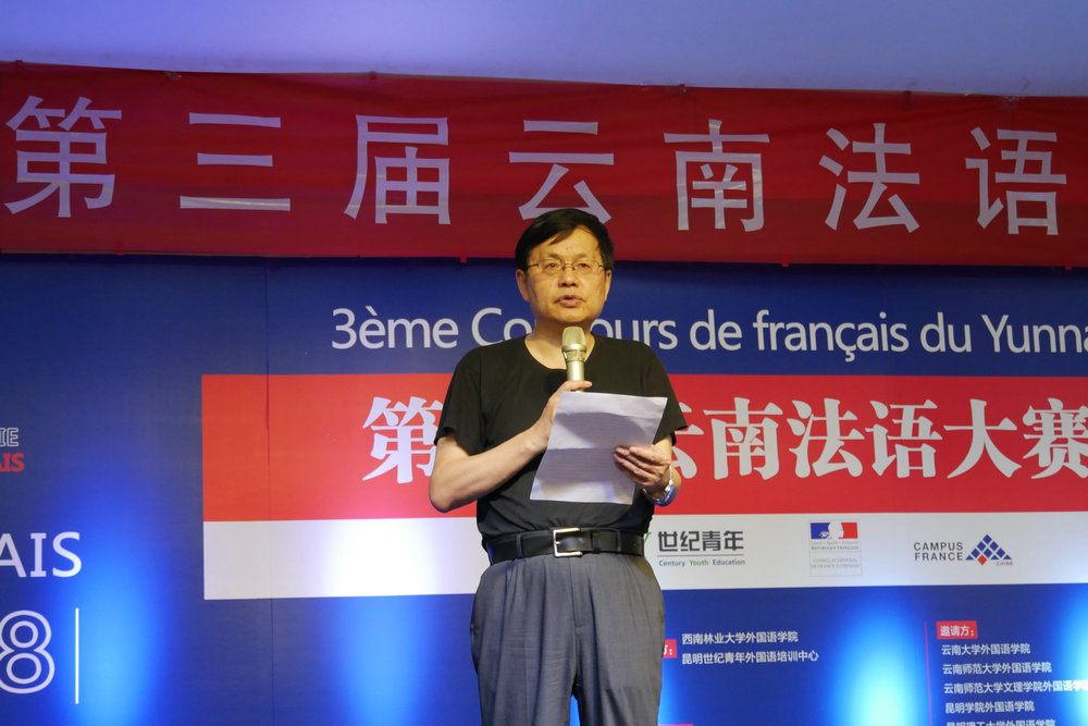 大赛于下午13点30分点正式开始,首先西南林业大胥辉副董事长代表学校向所有出席的领导、嘉宾、同学以及各个到会方表示了感谢和欢迎。法国驻成都总领事馆高教署李梅女士也代表法国领事馆致辞。随后,受邀到场的重量级嘉宾教育部大学外语教学指导委员会委员、中国译协专家委员李军教授为到场的同学们做了一场关于“怎么学法语”的精彩讲座。最后,为本赛事的共同主办方,昆明世纪青年外国语学校的董事长裴一苇先生宣布了本次比赛的开始。